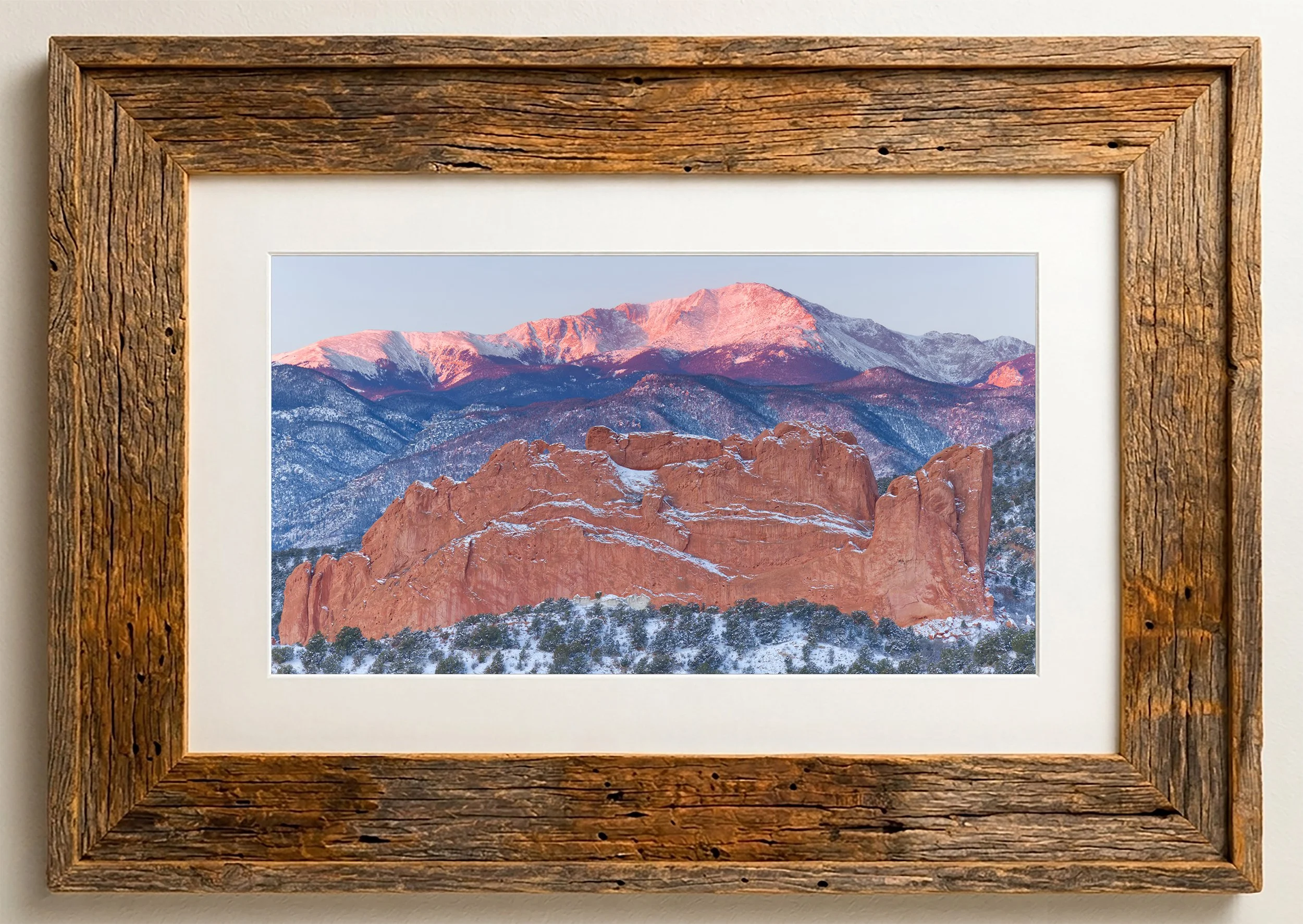Then, it happened. The alpenglow ignited, that fleeting, ethereal moment where the sun, still below the horizon, casts a soft, neon pink across the high-altitude snow of the peak. Slowly, the light began its deliberate creep down the mountain face, eventually reaching the snow-covered valley floor and setting the red rocks ablaze against the white drifts.