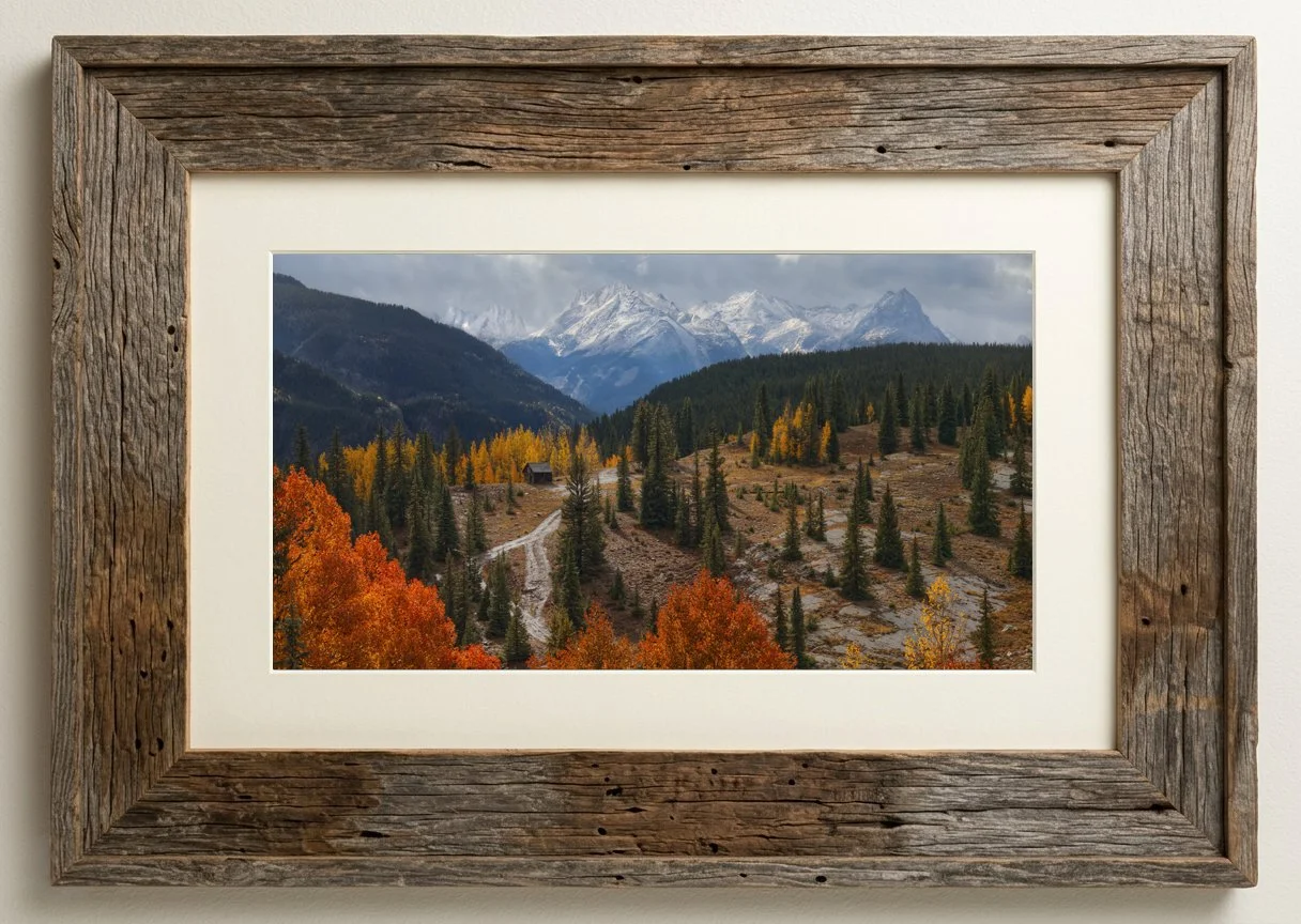 The scene that emerged was everything I had been hunting for: the cabin stood silent amidst the peak blazing of the aspens, while the Grenadier Range rose in the distance, freshly draped in a pristine coat of new snow. The contrast of the warm autumn foliage against the cold, winter-ready peaks created a tension that only exists in those rare transition moments between seasons.